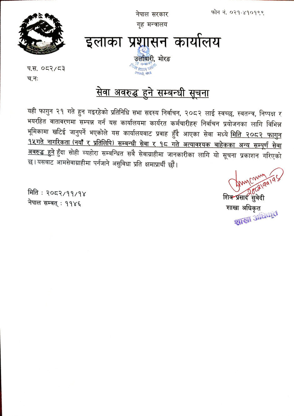 © सर्वाधिकार सुरक्षित ईलाका प्रशासन कार्यालय,उर्लावारी मोरङ्ग .